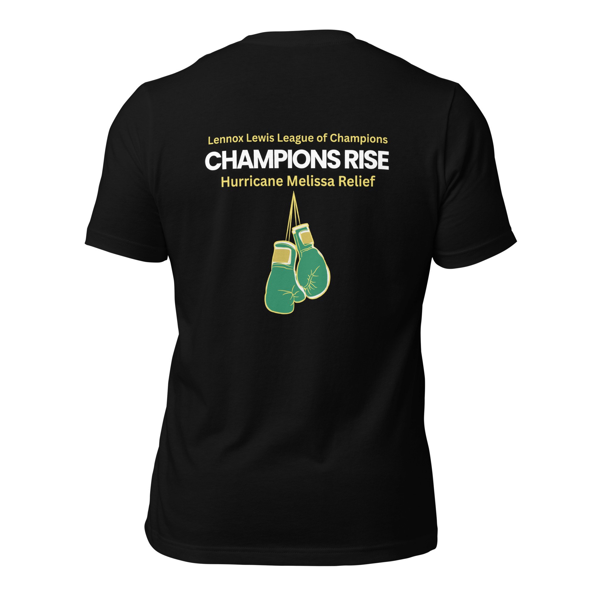 Every purchase fuels hope — proceeds go directly toward the Lennox Lewis League of Champions Hurricane Melissa Relief Fund, helping families and youth programs rebuild stronger than ever.